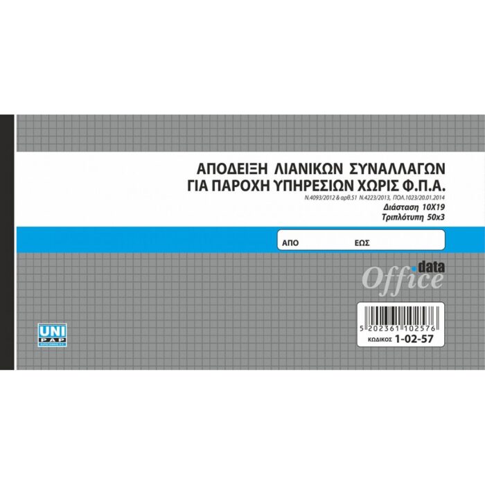 Απόδειξη λιανικών συναλλαγών για παροχή υπηρεσιών χωρίς ΦΠΑ 10×19 50×2