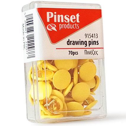 Πινέζες Pinset 70τεμ Κίτρινο
