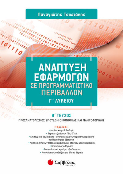 Ανάπτυξη Εφαρμογών σε Προγραμματιστικό Περιβάλλον Γ’ Λυκείου α’ τεύχος Τσιωτάκης Παναγιώτης