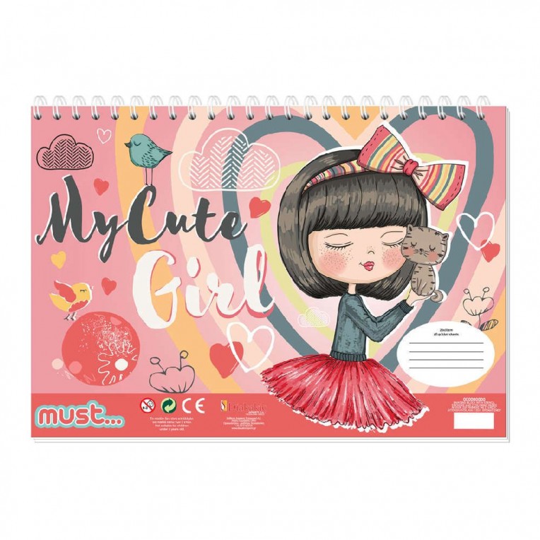 Μπλοκ Ζωγραφικής με Αυτοκόλλητα & Stensil Must My Cute Girl 40φ. – 2 Σχέδια (000584565)